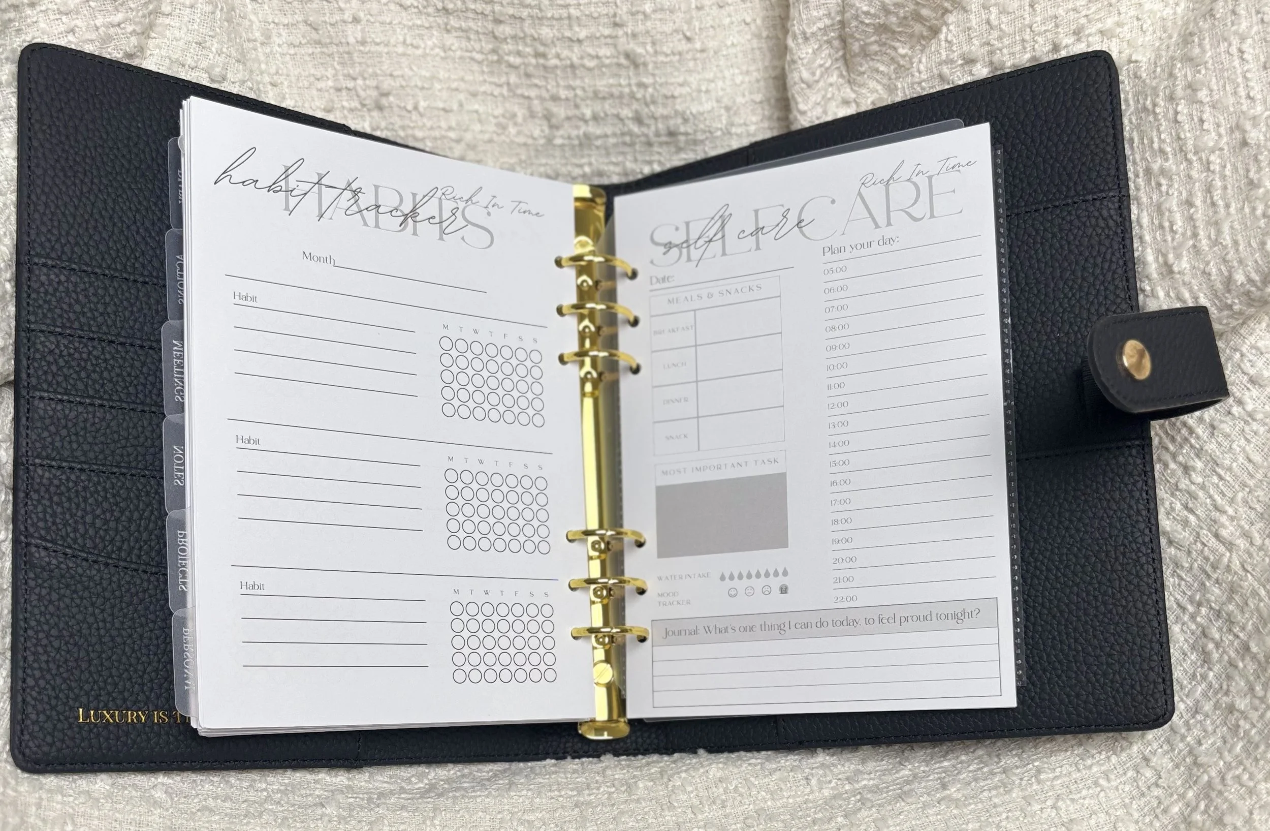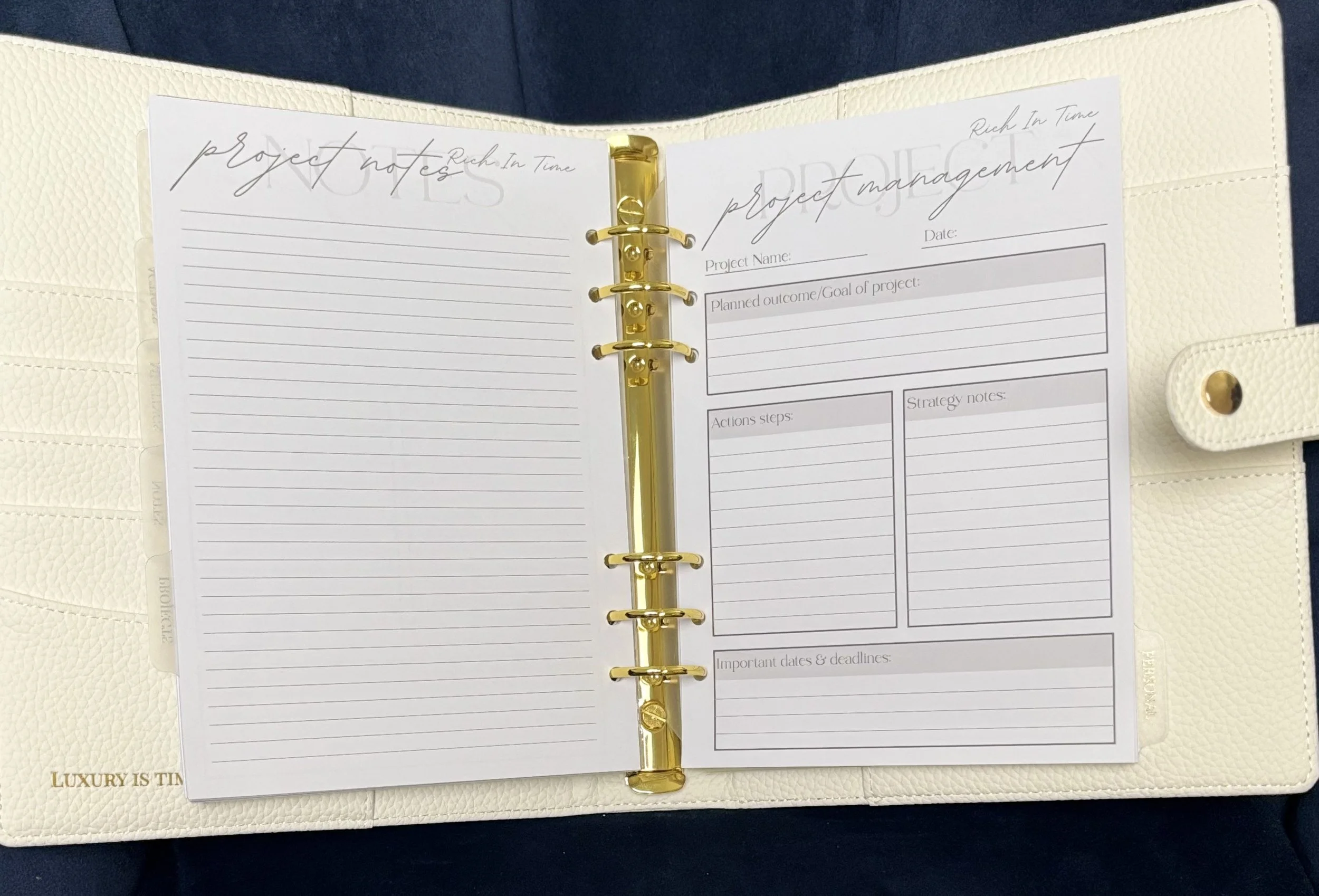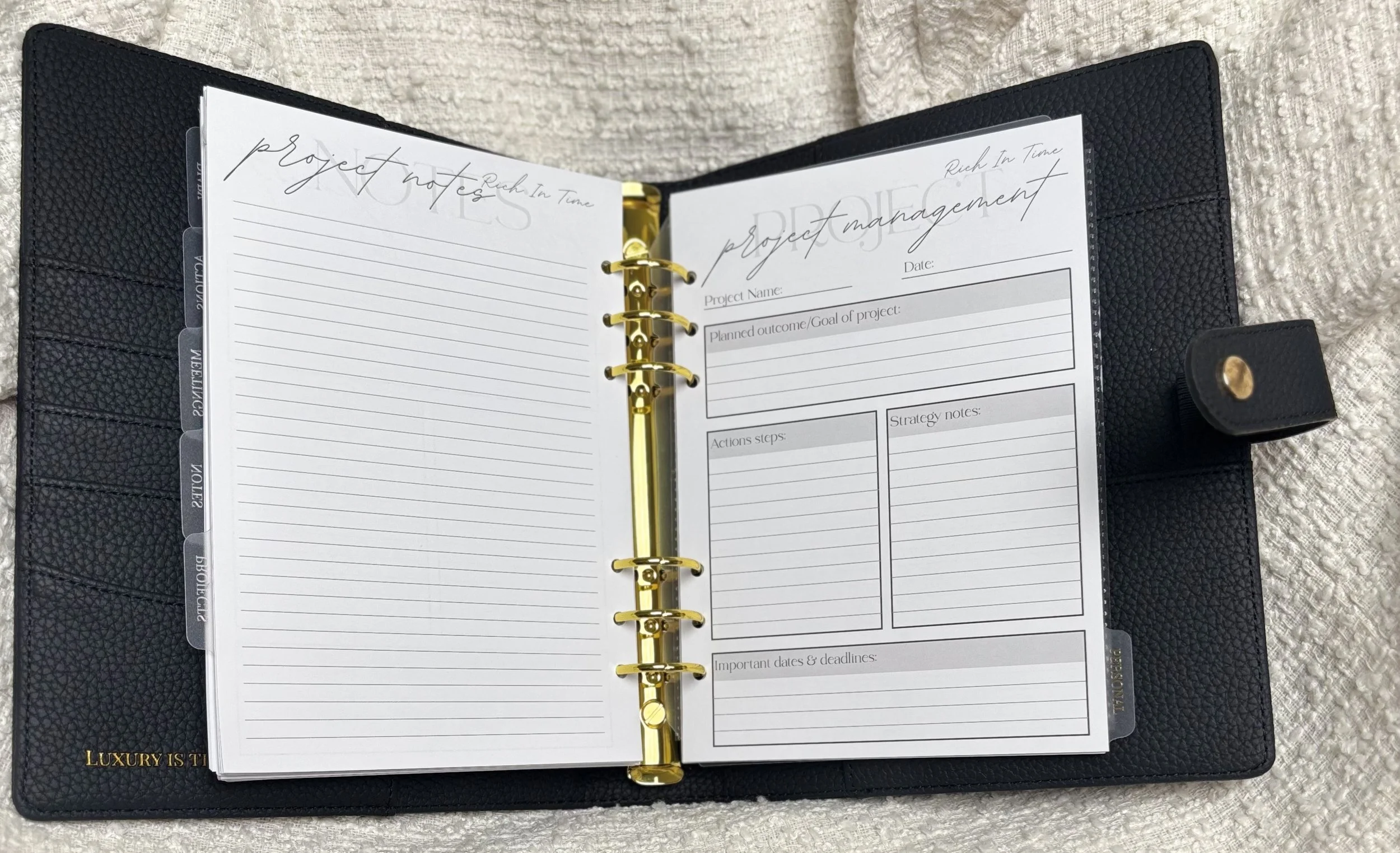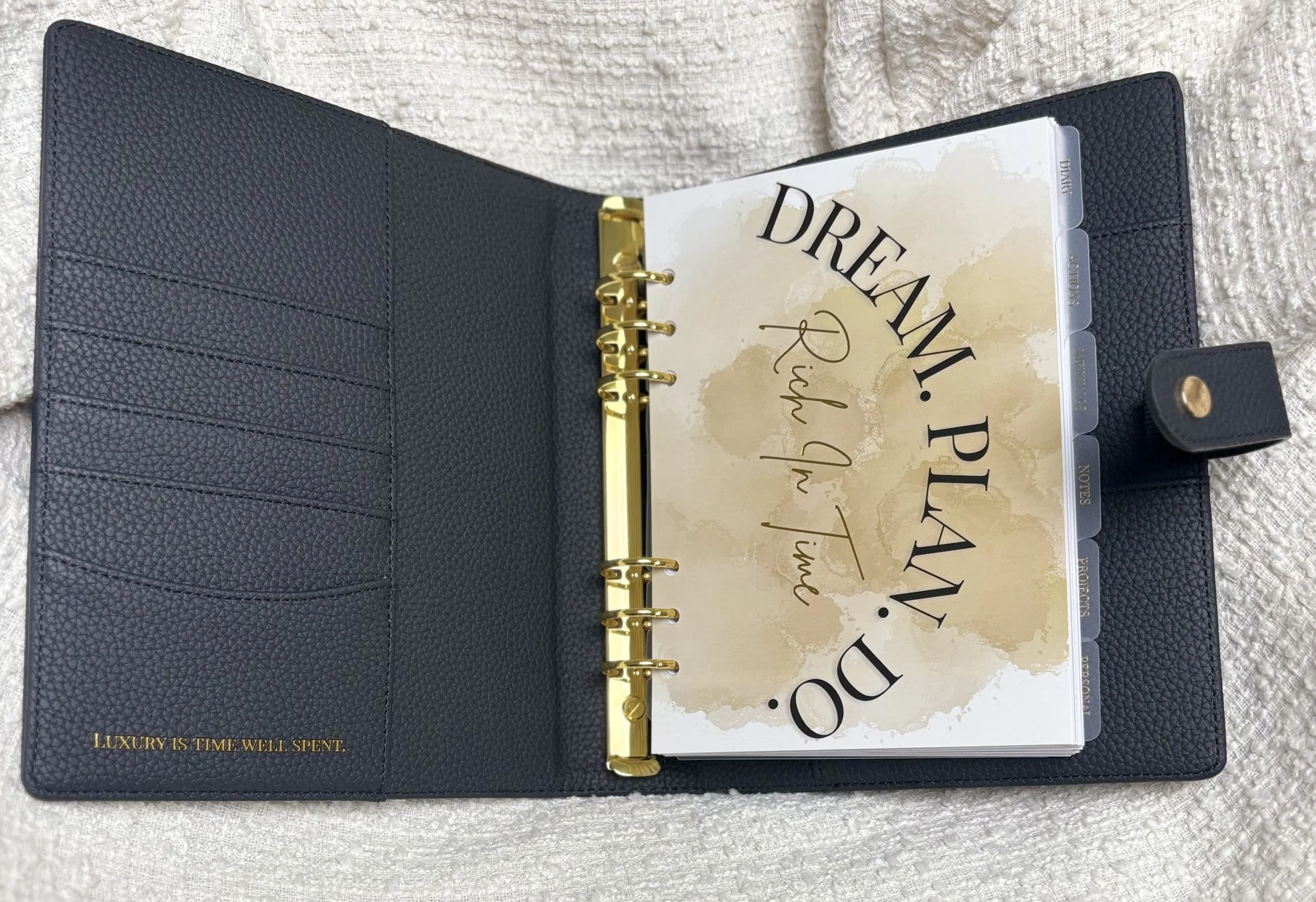Shop Black and Gold Planner - With A5 inserts, dividers and dashboard £79.00 Cream and Gold Planner - With A5 inserts, dividers and dashboard £79.00